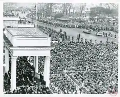 The second inauguration of Dwight D. Eisenhower as president of the United States was held privately on Sunday, January 20, 1957, at the White House and publicly on the following day, Monday, January 21, 1957, at the East Portico of the United States Capitol; both located in Washington, D.C. This was the 43rd inauguration and marked the commencement of the second and final four-year term of both Dwight D. Eisenhower as president and Richard Nixon as vice president. Chief Justice Earl Warren administered the presidential oath of office after the Senate Minority Leader William Knowland swore in the vice president in.[1]