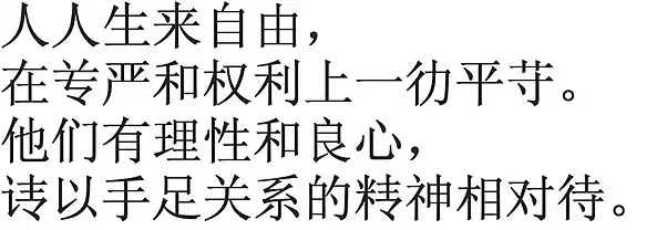 From Article 1 of the Universal Declaration of Human Rights in Second Round Simplified Chinese:
