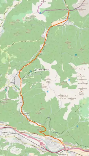 The Karwendel Railway runs more or less parallel with the Seefelder Straße, crossing it several times.