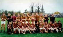 On 7 June 1970 (in their first Senior hurling game since July 1961), the Clareen team very nearly toppled reigning champions St Rynagh's.[35] Damien Martin's goalkeeping enabled St Rynagh's to battle back for a draw (Seir Kieran 4-6, St Rynagh's 2-12). Fore-warned was fore-armed in the replay on 12 July, when the Banagher men won by 4-13 to 2-3. The Clareen side were still alive in the 1970 championship, but were eliminated by Coolderry in the next round. There was only one bite of the cherry in 1971, when Seir Kieran were dismissed by Ballyskenagh. While they won their opening round match against Rahan in 1972, Kinnitty proved too strong for the black and amber when the next round was finally played off in October.