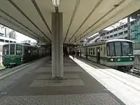 Seishin-Minami Station (西神南駅) is a railway station on the Seishin-Yamate Line in Nishi-ku, Kobe, Japan. It is located in a residential area near the Kobe Industrial Park.