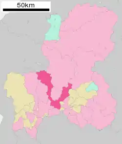 Seki (関市, Seki-shi) is a city located in Gifu, Japan. As of 1 January 2019, the city had an estimated population of 89,020 and a population density of 190 persons per km2 in 35,366 households.[3] The total area of the city was 472.33 square kilometres (182.37 sq mi).