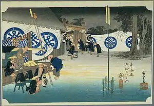![]() Hiroshige's print of Seki-juku, part of the Hōeidō edition The Fifty-three Stations of the Tōkaidō series | |
