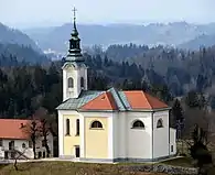 The parish church, dedicated to Saint Agnes,[2] was first mentioned in documents from 1232 and was Romanesque in its origins, although it has been frequently rebuilt and expanded, most recently in 1860.[3]