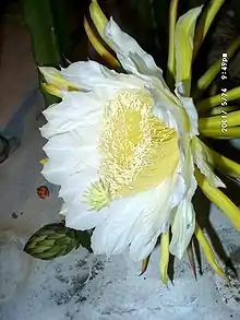 Selenicereus costaricensis, synonym Hylocereus costaricensis, known as the Costa Rican pitahaya or Costa Rica nightblooming cactus, is a cactus species native to Costa Rica, Panama and Nicaragua.[1] The species is grown commercially for its fruit, called pitaya or pitahaya, but is also an impressive ornamental vine with huge flowers. Its scientific name is problematic for several reasons. The species may not be distinct from Selenicereus monacanthus.