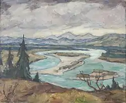 She enrolled at the private painting school operated by the Baltic German painter, Elise Jung-Stilling. In 1903, the Imperial Academy of Arts awarded her a diploma that enabled her to become a teacher in a middle school for girls.[1] While teaching, she also took private lessons from Janis Rozentāls and studied landscape painting with Vilhelms Purvītis.