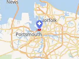 Sentara Norfolk General Hospital (SNGH) is a large academic hospital, which serves as the primary teaching institution for the adjacent Eastern Virginia Medical School. Located in Norfolk, Virginia, in the Ghent neighborhood and adjacent to Downtown, the hospital serves as the Hampton Roads region's only Level I trauma center.[1] The hospital is interconnected to the Sentara Heart Hospital, however, it is considered a separate institution. Together with the adjacent Children's Hospital of the King's Daughters, Eastern Virginia Medical School and the Norfolk Department of Health, the Eastern Virginia Medical Center is the largest conglomerate center for health in Hampton Roads.[2] For a time, the U.S. News & World Report rated it the best in Virginia.[3][4] In 2016, SNGH is tied with VCU Medical Center ranked as #2 while University of Virginia Health System ranked first.[5]