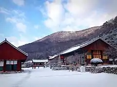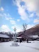 There is a camellia forest behind the main hall (daeungjeon) of the temple. The trees are roughly 500 years old, and are designated by South Korea as a natural monument. The temple is known for its worship of the Ksitigarbha Bodhisattva, and for its annual camellia festival.