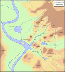 The Septimontium was a proto-urban festival celebrated in ancient Rome by montani, residents of the seven (sept-) communities associated with the hills or peaks of Rome (montes): Oppius, Palatium, Velia, Fagutal, Cermalus, Caelius, and Cispius.[1] The Septimontium was celebrated in September, or, according to later calendars, on 11 December. It was not a public festival in the sense of feriae populi, according to Varro,[2] who sees it as an urban analog to the rural Paganalia.[3][4]
