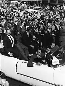 Yugoslavia began opening more diplomatic dialogue to western nations after the Tito–Stalin split, which assured that Yugoslavia was not to become a member of the Warsaw Pact. Pan American World Airways launched direct flights from New York to Belgrade in 1963.[26] On January 1, 1967, Yugoslavia was the first communist state to open its borders to all foreign visitors and abolish visa requirements.[27] The regular commercial air travel between the United States and Yugoslavia then saw the launching of JAT Yugoslav Airlines flights to the United States, effectively competing with Pan Am.[28][29] Trade opportunities reopened between the United States and Yugoslavia, and American businesses began exporting to Yugoslavia. Likewise, by the 1980s Yugoslavia was even exporting many of its manufactured automobiles from Zastava Automobili's assembly line in Kragujevac to the United States. U.S. president Jimmy Carter discussed issues regarding Palestine and Egypt with Tito and referred to him as a "great world leader".[30] Subsequently, the Reagan administration presented their policies towards Yugoslavia in a Secret Sensitive 1984 National Security Decision Directive NSDD 133. "U.S. Policy towards Yugoslavia." A censored version declassified in 1990 elaborated on NSDD 54 on Eastern Europe, issued in 1982. The latter advocated "efforts to expand U.S. economic relations with Yugoslavia in ways which will benefit both countries" serving as "a useful reminder to countries in Eastern Europe of the advantages of independence from Moscow".