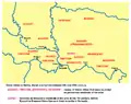 Approximate territory that, according to various sources, was ethnographically named Rascia (Raška, Racszag,[9] Ráczország, Ratzenland, Rezenland) between 16th and 18th century