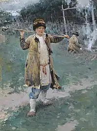 His father was a rural priest.[1] From 1880 to 1889, he studied at the Moscow School of Painting, Sculpture and Architecture with Illarion Pryanishnikov, Vladimir Makovsky and Vasily Polenov, who had a major influence on his style. In 1888, he was awarded the title of "Artist". The following year, he transferred to the Imperial Academy of Arts; studying with Bogdan Willewalde and Carl Wenig.[2]