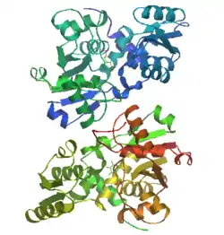 Serine racemase is an enzyme which generates D-serine from L-serine. D-serine acts as a neuronal signaling molecule by activating NMDA receptors in the brain. In humans, the serine racemase protein is encoded by the SRR gene.[5]