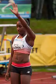 She had strong indoor form at the start of 2015, bringing her 60 m hurdles best down to 8.13 seconds, then 8.11 seconds. In the absence of Tiffany Porter, she was the winner of the British indoor title with a time of 8.04 seconds.[9] This brought her a place on the team for the 2015 European Athletics Indoor Championships and she excelled, improving her personal best in the heat (8.03), semi-final (7.95), and then the final (7.93) – as a result, she took the bronze medal behind Alina Talay and fellow British athlete Lucy Hatton.[10] This time raised her to fourth on the British all-time lists for the event, behind Porter, Jessica Ennis and Hatton.[11]
