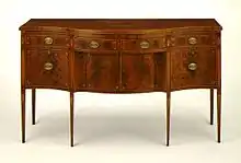In furniture, serpentine-front dressers and cabinets have a convex section between two concave ones.[4] This design was common in the Rococo period.[5] Examples include Louis XV commodes and 18th-century English furniture.[6]