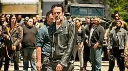 The episode focuses on the remaining members of the core group holding together in Alexandria, while mourning the deaths of Glenn and Abraham, but Negan (Jeffrey Dean Morgan) and the Saviors show up early at their gates for their first offering.