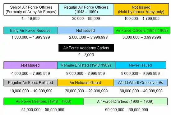 United States Air Force service numbers were created in the spring of 1948, approximately six months after the Air Force's creation as separate branch of the armed forces.[1]