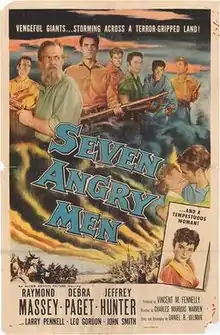 Seven Angry Men is a 1955 American Western film directed by Charles Marquis Warren and starring Raymond Massey, Debra Paget and Jeffrey Hunter.[1]