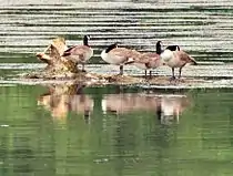 Species of birds found within the park include purple martins, tree swallows, common yellowthroats, yellow-breasted chats, summer tanagers, blue grosbeaks, and indigo buntings. Sparrows are common in winter, namely the field, Savannah, song, swamp, white-throated, and white-crowned species. Barn owls have been known to frequent the old barns in the area.[7] Waterfowl include Canada geese and mallards.[8]