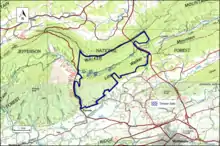 The area is in the Appalachian Mountains of Southwestern Virginia, east of adjoining US 52 and about 5 miles north of Wytheville, Virginia. A tunnel on Interstate 77 passes under its northeast corner.[2]