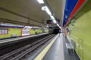 Sevilla is a station on Line 2 of the Madrid Metro. It is located in fare Zone A.[2] The station was opened on 15 June 1924 as part of Line 2.[3]