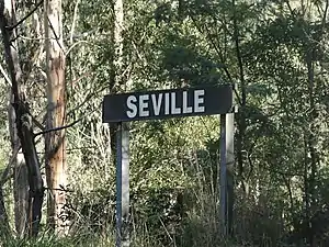 Seville was a railway station on the Warburton line in Melbourne, Australia. The station operated until the line closed in 1965. All that remains of this station is a poorly preserved timber retaining wall for the station platform.