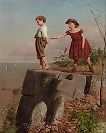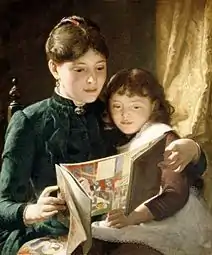 He was born and trained in London but moved to New York City, where he is known for genre works.[1] He trained for four years with the portrait painter Ambrosini Jerôme and married the daughter of an engraver, Anna Maria Barber, before his move to New York in 1854.[2] He was a member of the Sketch club and became friends with John George Brown, and they both began to paint genre works of children, probably inspired by their own, as Guy eventually had nine.[2] He died at his home in New York on December 10, 1910.[3]