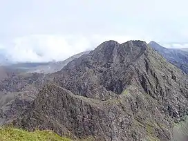 Sgùrr a' Ghreadaidh is the highest summit on the northern half of the Black Cuillin ridge on the Isle of Skye in Scotland. Like the rest of the range it is composed of gabbro, a rock that provides good grip for mountaineering.