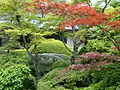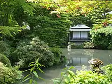 Shōyō-en (逍遥園) is a Japanese garden located next to the Sanbutsudō Hall of Rinnō-ji Temple in Nikkō. It was constructed in early Edo period, but reformed in the beginning of 19th century. The garden was given its name by a Confucian scholar Issai Sato. There is a pond containing carp in the middle; stone lanterns, bridges, bamboo fences, a pagoda, and a small tea house adorn the garden.