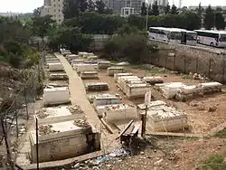 Until 1948, Jewish burials in Jerusalem were conducted in the centuries-old Jewish cemetery on the Mount of Olives. In January 1948, the Arab siege of Jerusalem made the Mount of Olives inaccessible, as the route to the cemetery passed through hostile Arab villages.[2] A new burial ground was opened next to the Sanhedria neighborhood on the northern border on March 28, 1948.[3] Since the Sanhedria Cemetery was operated under the exclusive jurisdiction of the Kehilat Yerushalayim chevra kadisha (burial society), founded in 1939 by Zionist leaders and moderate rabbis of the Old Yishuv, many Haredi residents of the Old Yishuv refused to use it, prompting the need for another burial ground in Jerusalem.[4]