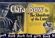 Shadow of the Law is an 1926 American silent crime drama starring Clara Bow as a woman sent to prison for a crime she didn't commit. Directed by Wallace Worsley, the screenplay was written by Leah Baird and Grover Jones and was based on the novel Two Gates, by Harry Chapman Ford.[1] Shadow of the Law is now regarded as lost.