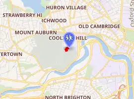 Shady Hill was founded in 1915 by a group of Cambridge families, including John Hubbard Sturgis Jr., Agnes Boyle O'Reilly, and her husband William Ernest Hocking. The school was first held on the "back porch" of the Hockings' house on Quincy Street in Cambridge.[3] The school enrollment quickly outgrew the Hocking home, and the Cooperative Open Air School (as it was originally known) moved to the Charles Eliot Norton estate at the corner of Scott and Holden Streets in Cambridge. The school took its current name from this location: Shady Hill Square, before moving to the school's current location on Coolidge Hill, also in Cambridge.