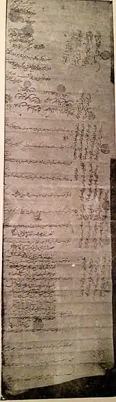The scroll documenting the endowment of the aforementioned properties has been certified by several prominent scholars, including Sheikh Baha al-Din Muhammad al-'Amili during the Safavid kings.[11] This document, as part of the valuable collection of the historical documents of Hossein Shahshahani was given to the Reza Abbasi Museum in Tehran in 1978 (1357).