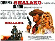 Shalako is a 1968 British-German-American Western film directed by Edward Dmytryk and starring Sean Connery and Brigitte Bardot. It was shot at Shepperton Studios near London with sets designed by the art director Herbert Smith. Location shooting took place in Almería in southern Spain, particularly in the Tabernas Desert which was frequently used in European westerns during the decade.