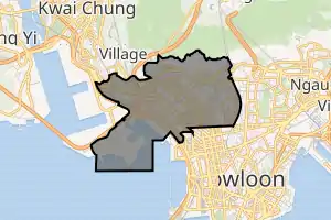 The district covers the Shek Kip Mei, Sham Shui Po, Cheung Sha Wan, Lai Chi Kok, Kowloon Tsai, So Uk, Un Chau, Tai Wo Ping and Yau Yat Chuen areas of New Kowloon, and Stonecutters Island of Kowloon.