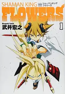 Shaman King: Flowers (Japanese: シャーマンキングFLOWERS, Hepburn: Shāman Kingu Flowers) is a Japanese manga series written and illustrated by Hiroyuki Takei. It was serialized in Shueisha's Jump X from April 2012 to October 2014, with its chapters collected in six tankōbon volumes.