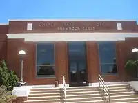 In 1936, the U-Drop Inn was built at the corner of the U.S. Route 83 and the now historic Route 66.[11] At the time of opening, the U-Drop was the only café within 100 miles (160 km) of Shamrock, enjoying brisk business and becoming a successful establishment.[12] Once considered a beautiful and impressive example of Route 66 architecture in Texas, the U-Drop Inn fell into disrepair with the decommissioning of Route 66.[13][14] Referred to as "one of the most impressive examples" of Route 66 architecture by the Texas Historical Commission,[15] the U-Drop Inn was added to the National Register of Historic Places in 1997.[16] In May 1999, the First National Bank of Shamrock purchased the then-closed U-Drop Inn and gave it to the city of Shamrock.[13][17] With a $1.7 million federal grant, the city was able to hire a firm specializing in historical renovation to restore the building to its original condition and adapt it into a museum, visitors' center, gift shop, and the city's chamber of commerce.[13][18][19] The revived U-Drop Inn was featured in the 2006 animated film Cars as the inspiration for the fictional Ramone's body shop.[20]