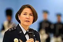 The highest ranking Air Force officer of Korean descent,[2] Dunbar was commissioned in 1982 upon graduation from the U.S. Air Force Academy and graduated with distinction from the National War College in Washington, D.C. Her military career encompassed a series of procurement, manpower, political-military, and command positions. As a Major, she was chosen to be the Air Force's first congressional fellow and was assigned to serve in the U.S. Senate for Senator Dan Coats (R-IN), Chairman of the Air/Land Forces and Personnel Subcommittees on the Senate Armed Services Committee and a respected bi-partisan voice on defense and acquisition reform. Coats assigned Dunbar to author the pivotal legislative initiative in 1996 known as the Quadrennial Defense Review (QDR). She then served as the military assistant to the Honorable Rudy de Leon and went on to command a mission support squadron, Air Force Basic Military Training,[3] and the 75th Air Base Wing at Hill Air Force Base, Utah where she also served as the first female installation commander.[4] In addition to these military assignments, Dunbar was appointed by the Secretary of Defense to serve on two separate congressionally-mandated Task Forces convened to address sexual assault and harassment in the military services[5] and their respective military service academies.[6] She was later appointed by the Secretary of the Air Force to direct the Air Force Follow-On Review[7] in response to the 2009 Fort Hood shooting as well as to lead the Air Force's repeal of Don't Ask, Don't Tell in 2011.