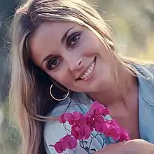 Polanski urged Tate to end her association with Martin Ransohoff, and she began to place less importance on her career until Polanski told her that he wanted to be married to "a hippie, not a housewife".[7] The couple returned to Los Angeles and quickly became part of a social group that included some of the most successful young people in the film industry, including Warren Beatty, Jacqueline Bisset, Leslie Caron, Joan Collins, Mia Farrow, Jane Fonda, Peter Fonda, Laurence Harvey, Steve McQueen, Joanna Pettet and Peter Sellers; older film stars such as Yul Brynner, Kirk Douglas, Henry Fonda and Danny Kaye; musicians such as Jim Morrison and the Mamas & the Papas; and record producer Terry Melcher and his girlfriend Candice Bergen. Jay Sebring remained one of the couple's more frequent companions. Polanski's friends included Wojciech Frykowski, whom Polanski had known since his youth in Poland, and Frykowski's girlfriend Abigail Folger, the coffee heiress. Tate and Polanski moved into the Chateau Marmont in Los Angeles for a few months[10] until they arranged to lease Patty Duke's home on Summit Ridge Drive in Beverly Hills during the latter part of 1968.[10] The Polanski house was often full of strangers, and Tate regarded the casual atmosphere as part of the "free spirit" of the times, saying that she did not mind who came into her home as her motto was "live and let live".[10] Her close friend Leslie Caron commented that the Polanskis were too trusting, "to the point of recklessness", and that she had been alarmed by it.[17]