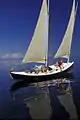 Egret-type sharpie sailing in Biscayne Bay, Florida
