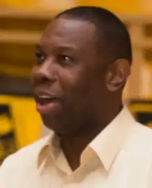 Shaun Garin Vandiver (born June 15, 1968) is a retired American college and professional basketball player and currently an assistant basketball coach for the University of Wyoming. Vandiver served as the head basketball coach at Emporia State University from 2011 to 2018. Born in Chicago,[1] the Bolingbrook, Illinois native[2][3] was selected 25th overall in the 1991 NBA Draft, from Hutchinson Community College and the University of Colorado Boulder. A 6'10" (2.08 m) and 240 lb (109 kg) power forward[1] was also an outstanding basketball player in the European leagues in Italy (for Mangiaebevi Bologna in 1991–92 and Pfizer Reggio Calabria in 1994–95) and Spain (Caja Bilbao in 1995–96).