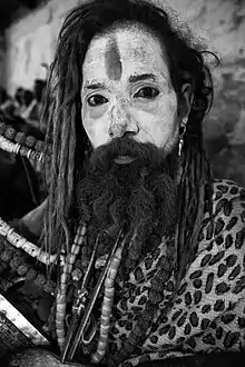 The sadhaka may also meditate on a deity.[1] Offerings to the deity are put in the corpse's mouth.[6] The practitioner may perform pranayama and meditate on his guru and the deity in his mind.[6] He can also practice japa (repetition of a mantra or a deity's names or epithets), till the corpse promises him to grant his wish.[2] He may encounter an Akashavani (a voice from the skies) which may try to tempt him with material things.[5] He will experience terrifying visions and sounds as well as temptations; however the practitioner should remain untouched and concentrate on the meditation. On conducting the rite successfully, the sadhaka would be blessed with mantra-siddhi (a supernatural power to use a mantra) or become one with Shiva. Uniting with Shiva is said to lead to detachment, a characteristic of the ascetic god. Shiva is himself equated with shava, the corpse. As the vessel of Shiva, the adept becomes an avadhuta, a mystic who is beyond egoic-consciousness, duality and common worldly concerns.[1] The Tantrasara says that a voice may ask for more offerings or bless the practitioner by granting his wishes.[6]
