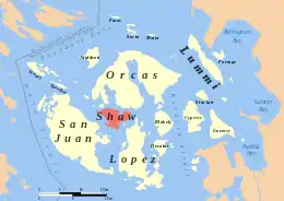 ![]() Location of Shaw Island in the San Juans | |