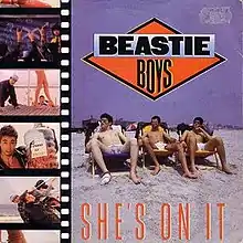 "She's on It" is a song by American rap rock group the Beastie Boys. The group's third single and their final release of pre-Licensed to Ill material, it was released on September 12, 1985, being the fifth single release of the soundtrack to the 1985 film Krush Groove.