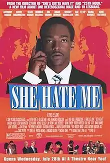 She Hate Me is a 2004 American independent comedy drama film directed by Spike Lee and starring Anthony Mackie, Kerry Washington, Ellen Barkin, Monica Bellucci, Brian Dennehy, Woody Harrelson, Bai Ling and John Turturro.