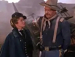 Director John Ford's older brother Francis appears in only one scene as Connolly, the barman. Ford kept Francis on wages "for eight weeks even through Francis could have completed his scenes in less than a week."[5] Other uncredited cast members include: Irving Pichel as narrator (voice), Harry Woods as Karl Rynders, the sutler; Cliff Lyons as Trooper Cliff; Mickey Simpson as Wagner, the blacksmith; Fred Libby as Corporal Kumrein; and Rudy Bowman as Private Smith.[6] Among Rynders' associates is veteran character actor Paul Fix (Harry Carey, Jr.'s father-in-law) in a small uncredited role.[7]