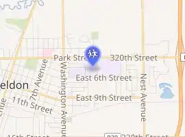 Sheldon High School is a rural public high school in Sheldon, Iowa, serving students of the Sheldon Community School District in grades 9-12. The school mascot is the Orab, a portmanteau of the school colors, orange and black.[6][7] Athletic competitions have taken place in the Siouxland Conference since 2009, when the school moved from the Lakes Conference.[8]