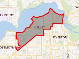 The suburb's northern foreshore is bound by Riverton Drive North. In the east, the borders starts from Riverton Drive East, Barbican Street East, Tudor avenue South, Tribute Street, Modillion Avenue, Corinthian Road East.