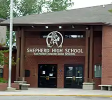 Shepherd School District educates students from kindergarten through 12th grade.[4] Shepherd High School's team name is the Mustangs.[5]