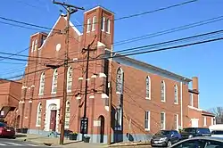 The Shiloh Baptist Church (Old Site) is a historic Baptist church at 810 Sophia Street in downtown Fredericksburg, Virginia. The church is a two-story brick building with predominantly Classical Revival styling, modeled to some degree after the Presbyterian Church of Fredericksburg, with later alterations. The church was built in 1890 for a predominantly African-American congregation, whose origins lie in a mixed-race Baptist congregation founded in 1804. That congregation split about 1815, worshipping in a building at this site, and became known as the Shiloh Baptist Church with the construction of a new building here in the 1830s. In 1849 the large congregation again divided, with most of its white members leaving to form the Fredericksburg Baptist Church at Princess Anne and Amelia Streets. Services were discontinued during the American Civil War, and the existing building was damaged, in part due to abuse caused during military occupation of the city. It collapsed in 1886, and the present building was constructed in 1890 as its replacement. However, due to a schism in the congregation, two separate groups claimed the name "Shiloh Baptist", which was resolved by giving the one at this location the name "Shiloh Baptist Church (Old Site)", which it still retains.[3]